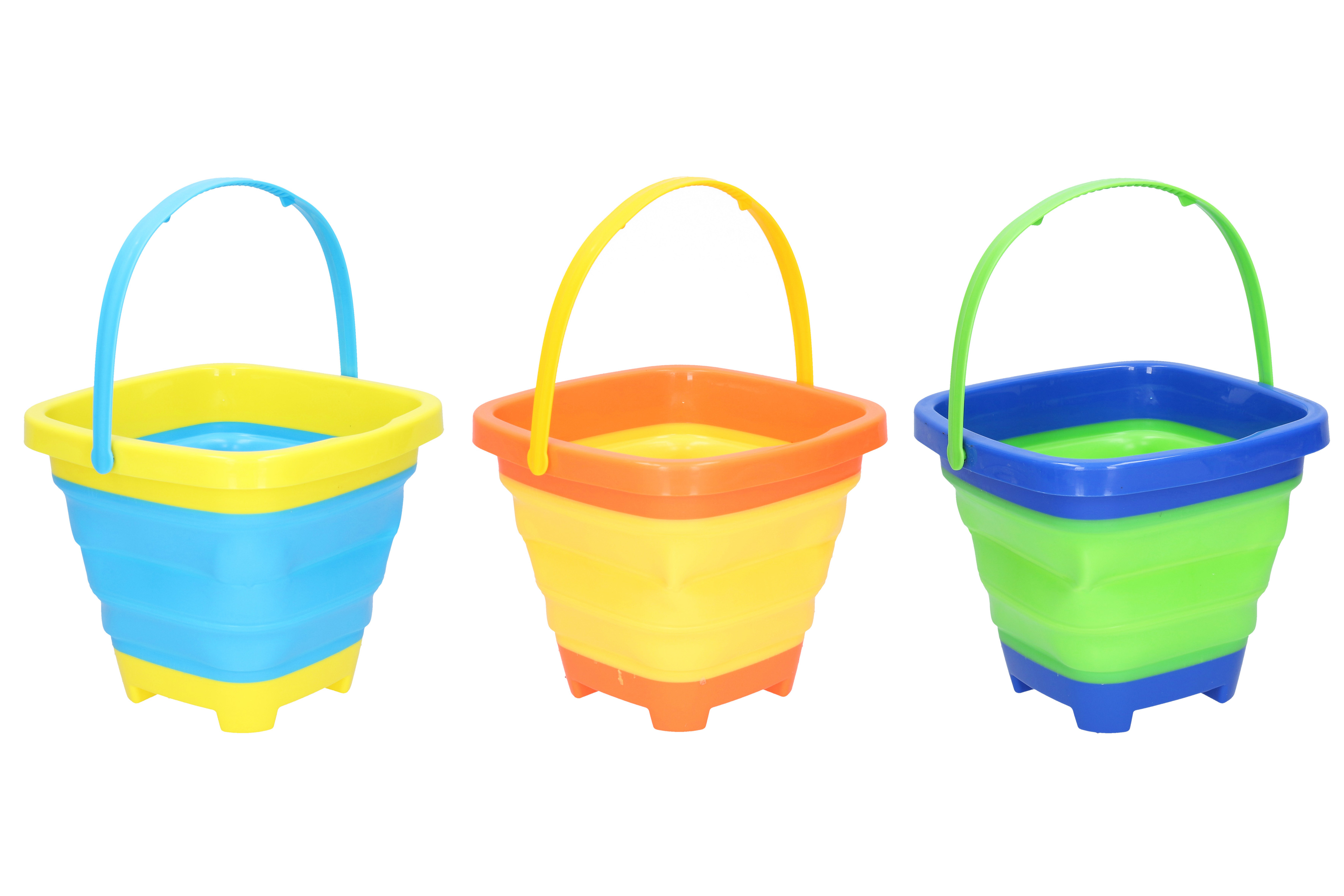 S pomocí plastového kyblíku půjde stavění hradů a báboviček raz dva! Praktický skládací kbelík nezabere moc místa a snadno ho složíš, takže si ho můžeš vzít třeba na prázdniny k babičce a dědečkovi.
