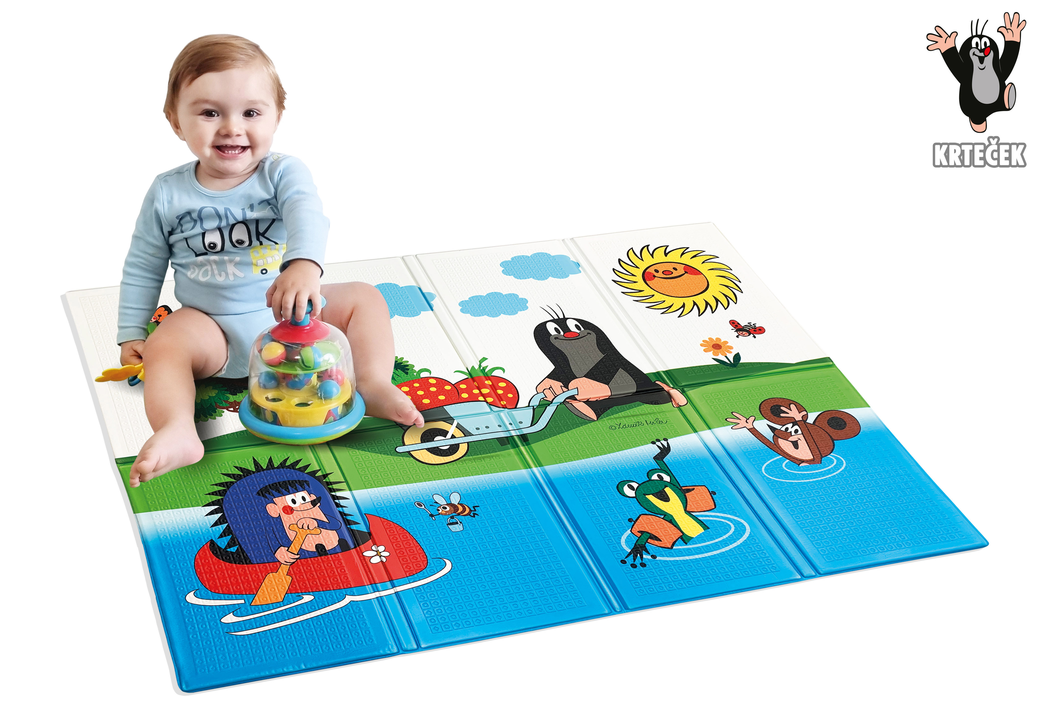 Skládací pěnová podložka Krtek. Rozměry 120 x 90 cm. Složitelná do rozměru 30 x 45 cm. Hypoalergenní, omyvatelná.
