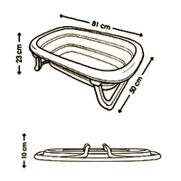 Vanička je vybavena výpustním ventilem a páskovým teploměrem, což výrazně zvyšuje komfort a bezpečnost při každodenním používání. Dá jednoduše složit na výšku pouhých 10 cm, přičemž plastové nožičky se sklopí přímo pod vaničku – díky čemuž zabírá minimum místa a je ideální pro skladování i v menších prostorách.