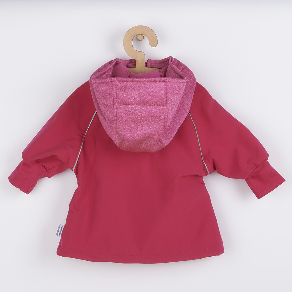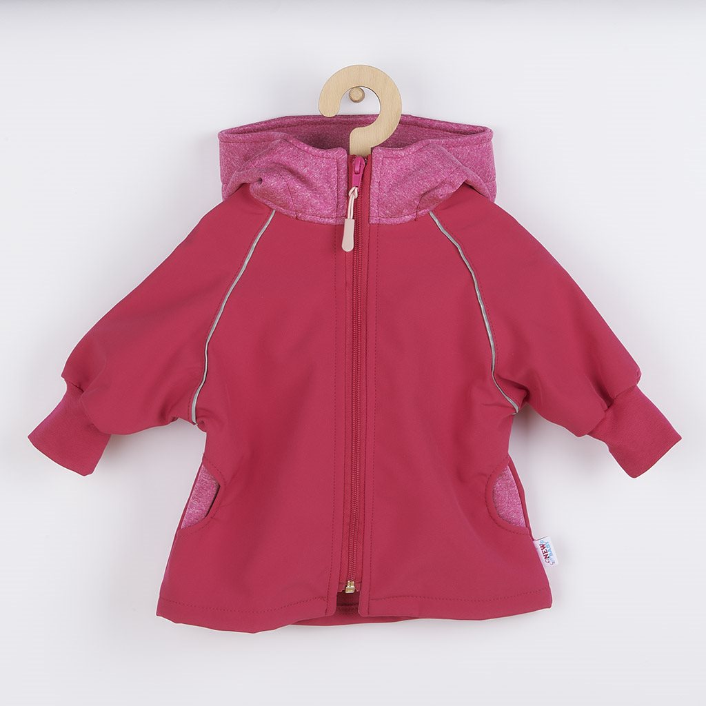 Nápaditá softshellová kojenecká bundička New Baby. Bundička je vyrobena v České republice z kvalitního materiálu softshell. Materiál je hladký, elestický, měkký a příjemný na dotek. Do určitého stupně je také voděodolný, nenasakuje vodu a je odolný vůči znečištění. Praktické zapínání na zip po celé délce velmi usnadní oblékání a přebalování. Zip je po celé délce podšitý látkou, a tím je zamezeno profukování větru na pokožku miminka. Bunda má praktickou kapuci, širší pružné lemy na rukách a v pase a celá vnitřní strana je zateplená krátko střiženým polarem, který zvyšuje komfort nošení a zajišťuje teplo. Na rukávcích jsou našité reflexní paspulky. Softshellová bundička je vhodná jako sportovní oblečení, je odolná větru a zároveň prodyšná. Miminko se bude cítit velmi pohodlně a příjemně.