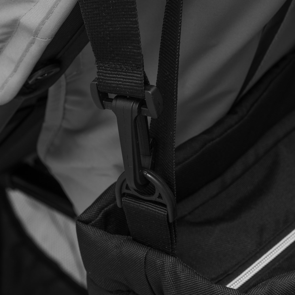Pevně přišité popruhy zajišťující stabilní připevnění ke kočárku