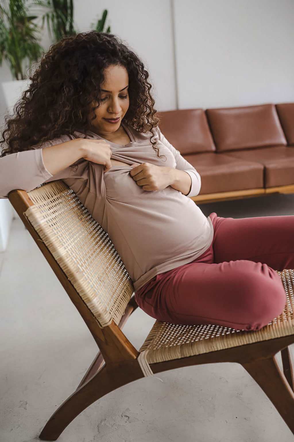 Těhotenské a kojící tričko Milk Shirt milk & love s výstřihem do V. Tričko, které usnadní kojení je vyrobeno z kvalitní bavlny s přídavkem elastanu, díky kterému se nevytahuje a po vyprání se vrací do původního tvaru. Proto vypadá skvěle i po těhotenství a lze ho používat i při kojení. Jednoduché otevírání "smyčkou" umožňuje velmi rychle nakrmit hladové miminko. Správný střih, který zakryje drobné nedostatky postavy, která se ještě nevzpamatovala z těhotenství a dostatečně dlouhý, aby zakryl záda. Elastická látka pojme i těhotenské bříško. Při výběru velikosti se řiďte velikostí, kterou aktuálně nosíte. Oblečení je vyrobeno z elastické látky, proto se přizpůsobí velikosti těhotenského bříška a měnícím se tvarům těla. Oblečení se měří naplocho, takže rozměry uvedené tabulce-(poslední fotografie) nejlépe porovnáte s rozměry oblečení, které vám aktuálně sedí. Nejkvalitnější prodyšné látky, které prošly přísnými testy Oeko-Tex Standard 100. Díky nim je oblečení měkké a příjemné na dotek pro maminku i dítě. Složení: 92% bavlna, 8% elastan. Délka rukávů 7/8.