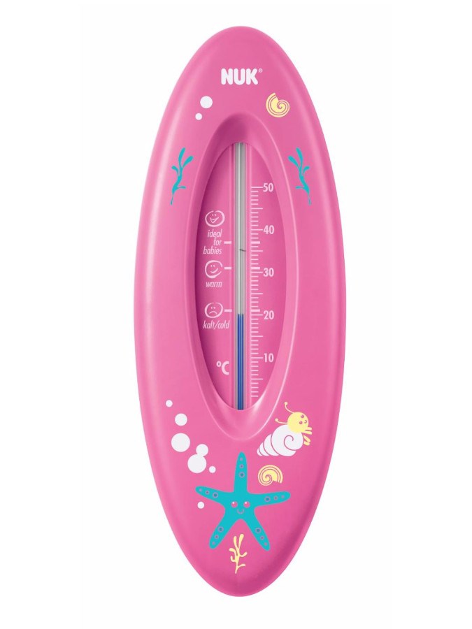 Barevný plovoucí teploměr NUK do vaničky. Ideální teplota pro Vaše dítě je označená na teploměru a je 36,9°C (dávejte pozor, aby teplota nepřesáhla 37°C), teplota vzduchu během koupání by měla být kolem 20°C – 22°C. Díky ukazatelům Cold, Warm a Ideal for babies lze ideálně přizpůsobit teplotu vody potřebám miminka. Vyroben z kvalitních a bezpečných materiálů. Zřetelné vyznačení teploty. Náplň tvoří neškodný řepkový olej.