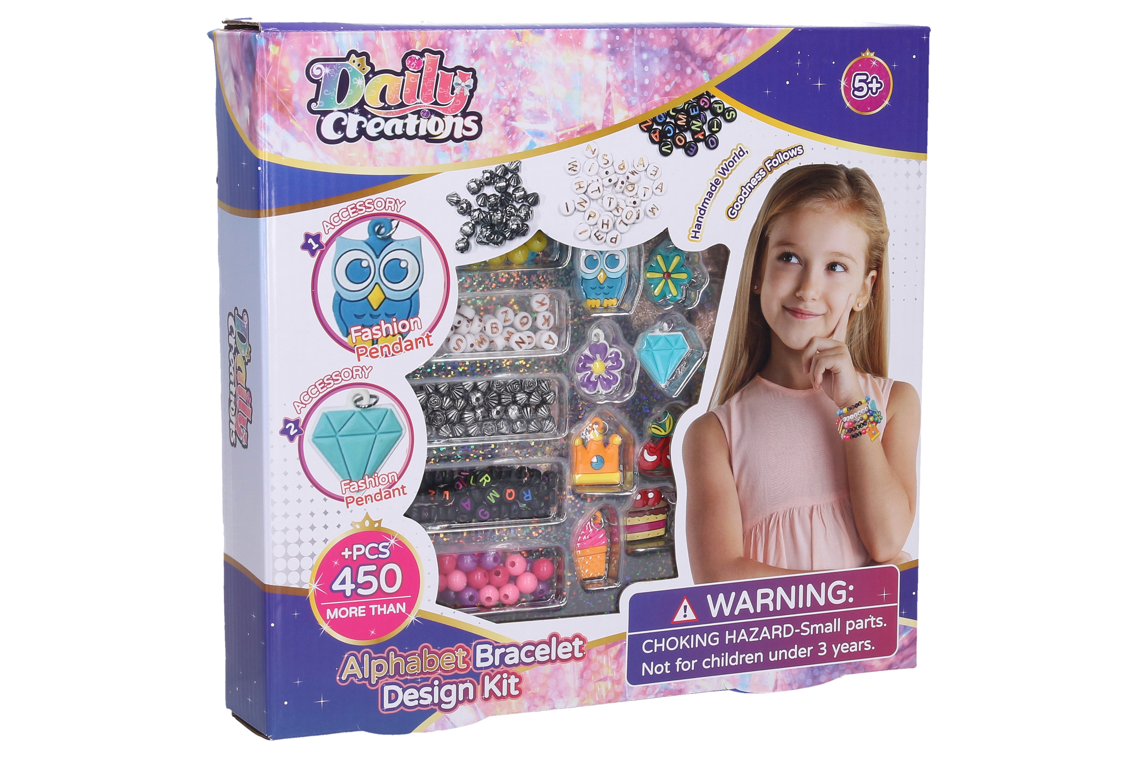 Tvorba náramků s přívěsky. Obsahuje provázek, korálky, přívěsky. Více než 450 dílků.