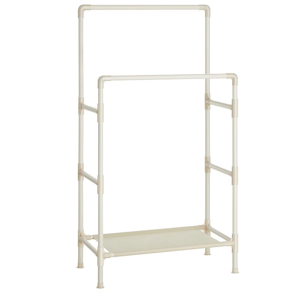 Stojan má 2 velmi stabilní a odolné tyče pro zavěšení kabátů, bund, šatů, košil nebo sak. Na tyčích můžete také zavěsit šály, šátky nebo komíny. Je obzvlášť užitečný během svatební a svatostánkové sezóny, kdy potřebujete mít připravené perfektně vyžehlené košile nebo šaty.