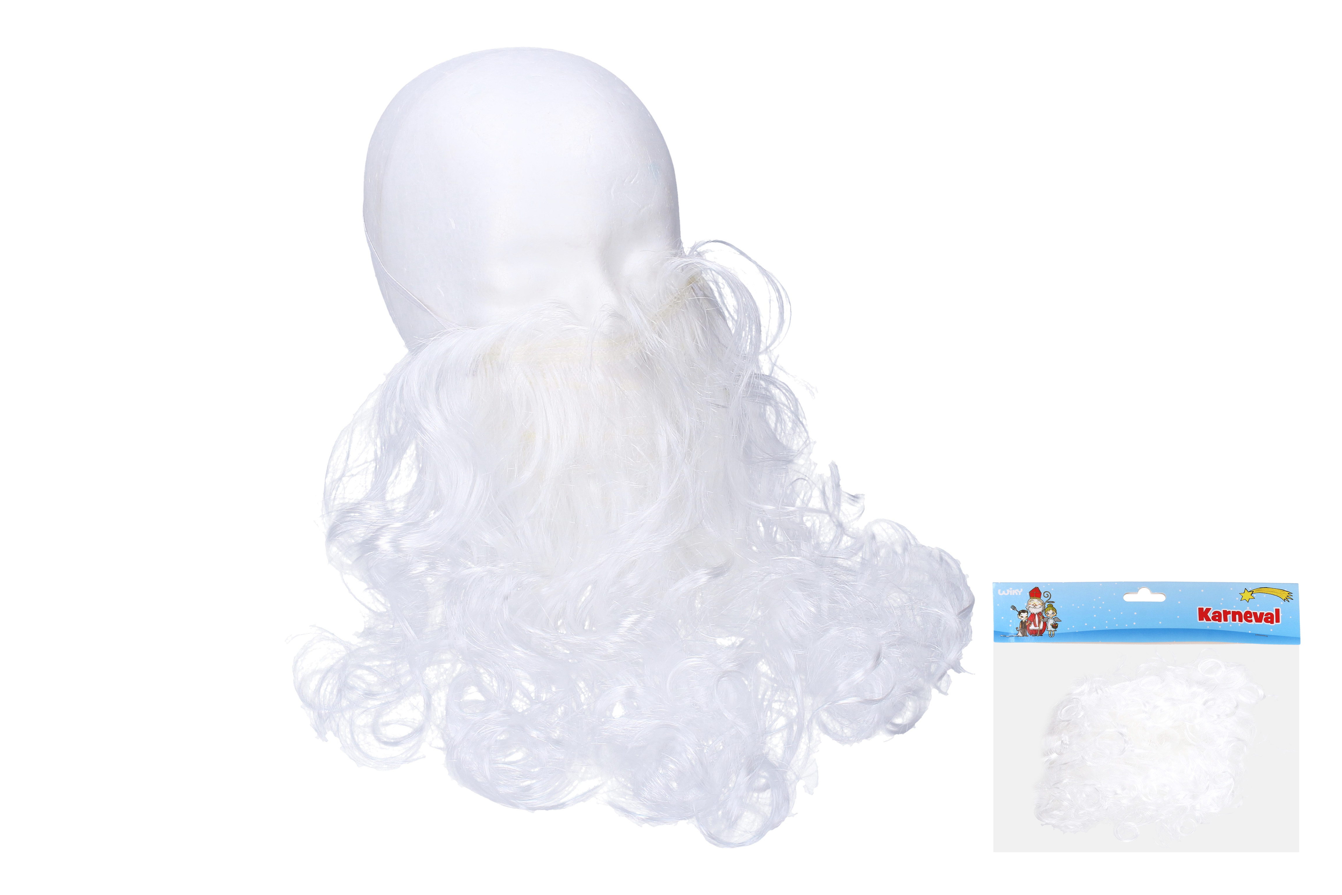 Bílé vousy jsou vhodné zejména pro Mikuláše, trpaslíka nebo čaroděje. Dají se ale také použít pro masku dědečka či pohádkové postavy. Upevňují se pomocí gumy vedené za hlavou a mají otvor pro ústa.  Doporučený věk:  od 6 let