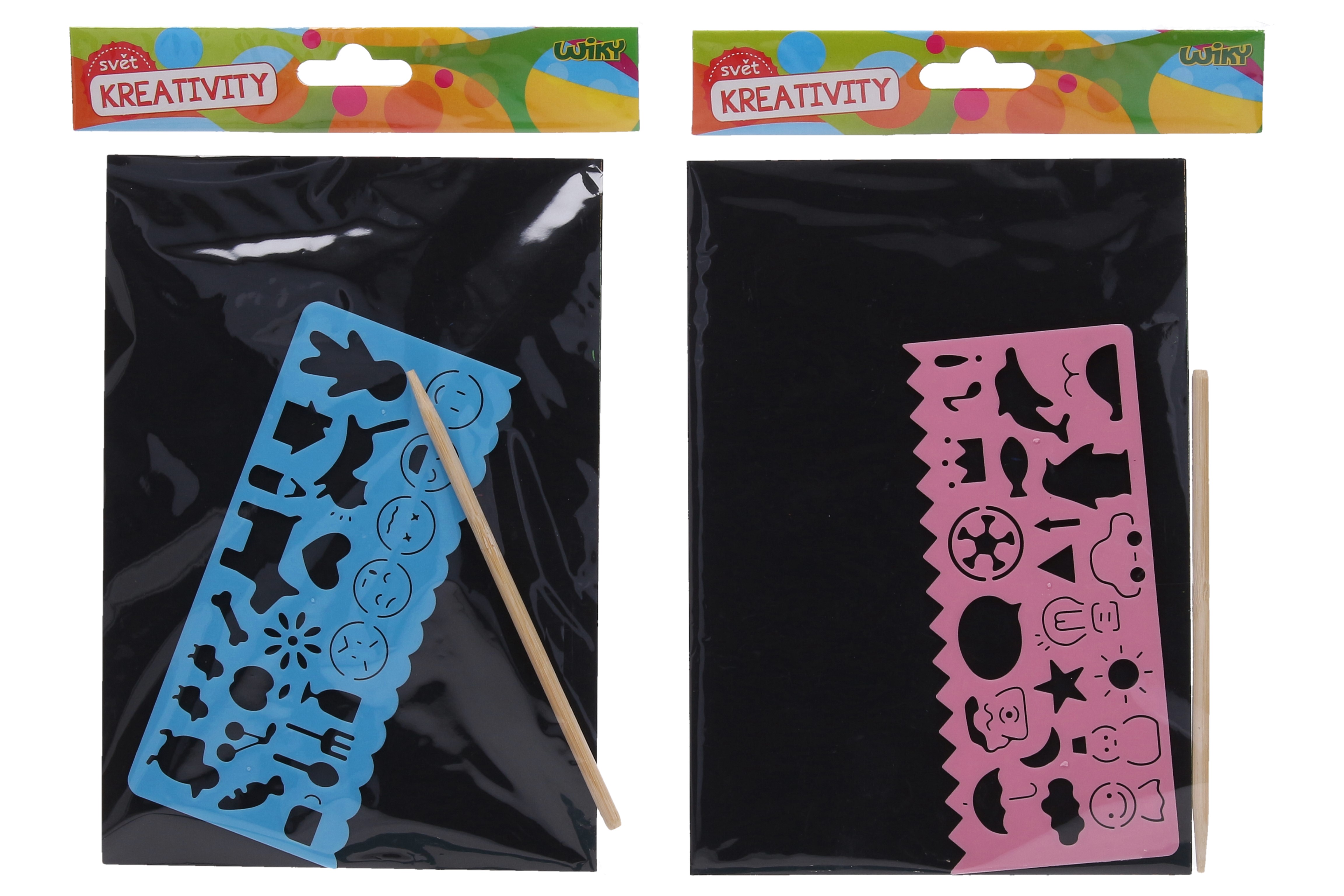 Vyškrabovací plátno o velikosti 14,5x20 cm + šablona + tužka.
