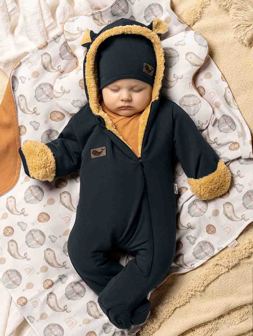 Roztomilý stylový a praktický zimní overálek s kapucí a oušky Nicol Miki pro miminka. Každé miminko v něm bude naprosto úchvatné a v pohodlí teploučka. Je vyrobený z kvalitní látky, která je velmi příjemná na dotek. Materiál si po dlouhou dobu zachovává svůj původní tvar. Overálek je podšitý z hřejivého materiálu tzv. Wellsoftu. Rukávky lze ohrnout a tím vynikne hřejivá podšívka. Boční zapínání po celé délce na zip usnadní oblékání. Složení: vrchní materiál: 95% bavlna, 5% elastan, podšívka 90% polyester, 10% bavlna- typ welsoft. Ideální pro miminka na zimu a podzim.