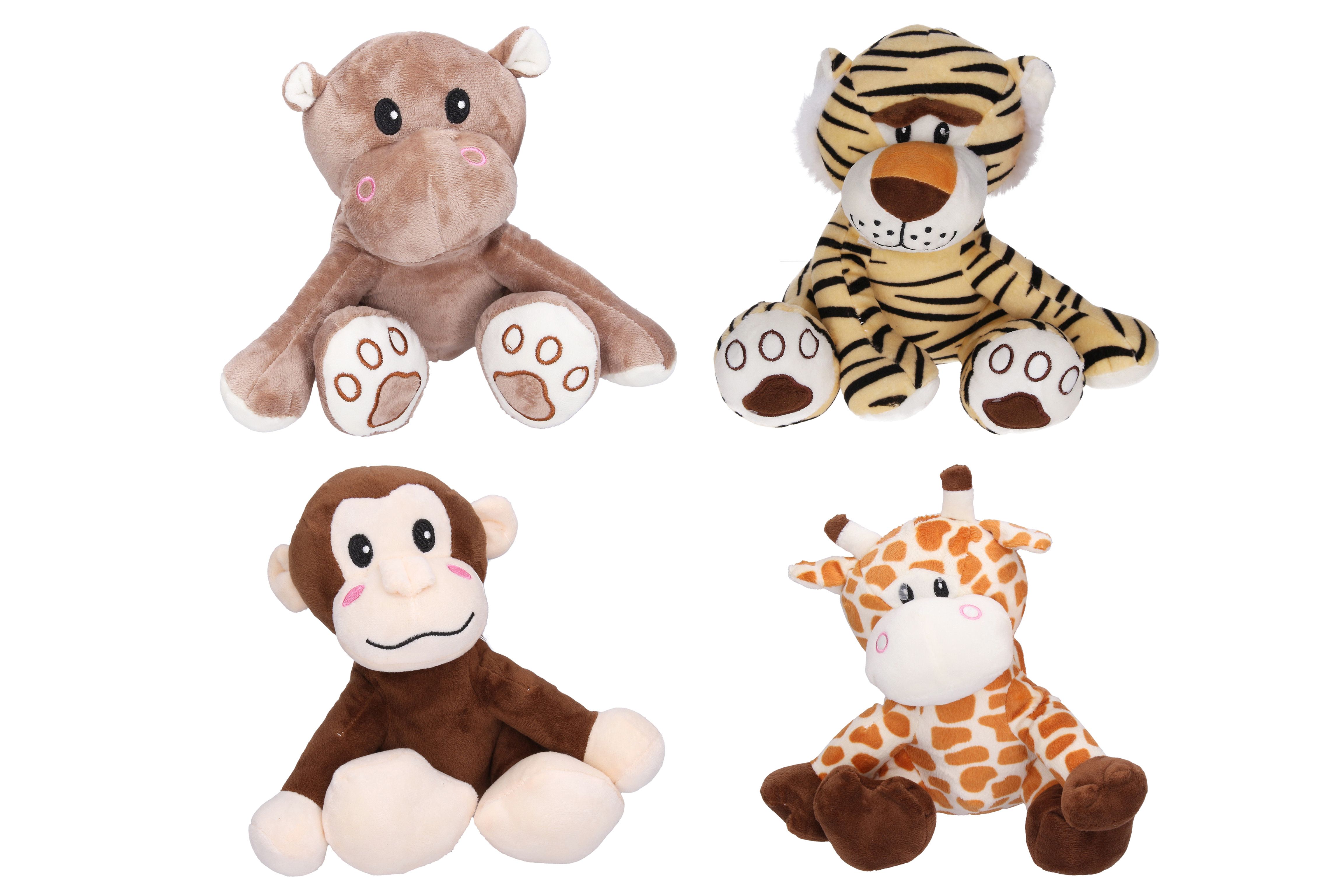 Zvířátko. Velikost 22 cm. 4 varianty - žirafa, opice, tygr, hroch.